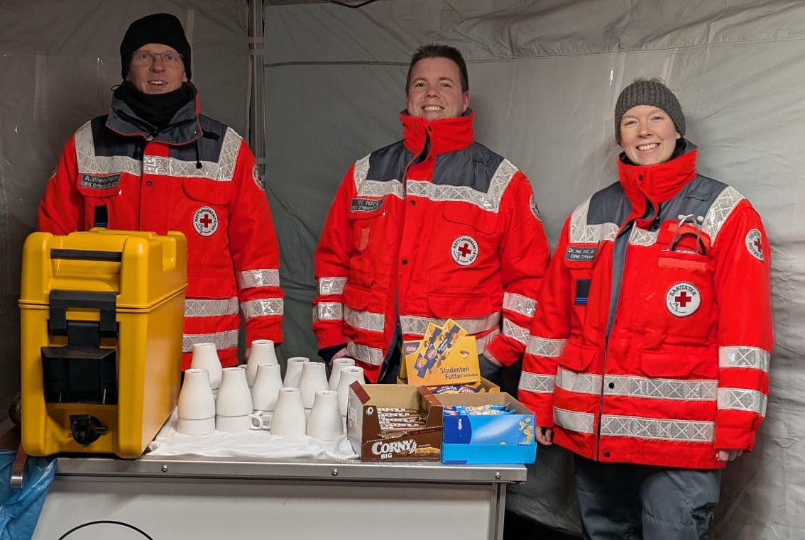 In Ulm-Söflingen kam es zu einem ausgedehnten Wohnungsbrand, der auf einen Dachstuhl übergegriffen ist. Bei klirrender Kälte um die -8°C haben wir die Einsatzkräfte der Feuerwehr Ulm mit heißem Kaffee, Tee und Snacks versorgt. Gegen 06:30 Uhr waren wir wieder einsatzbereit am Standort.